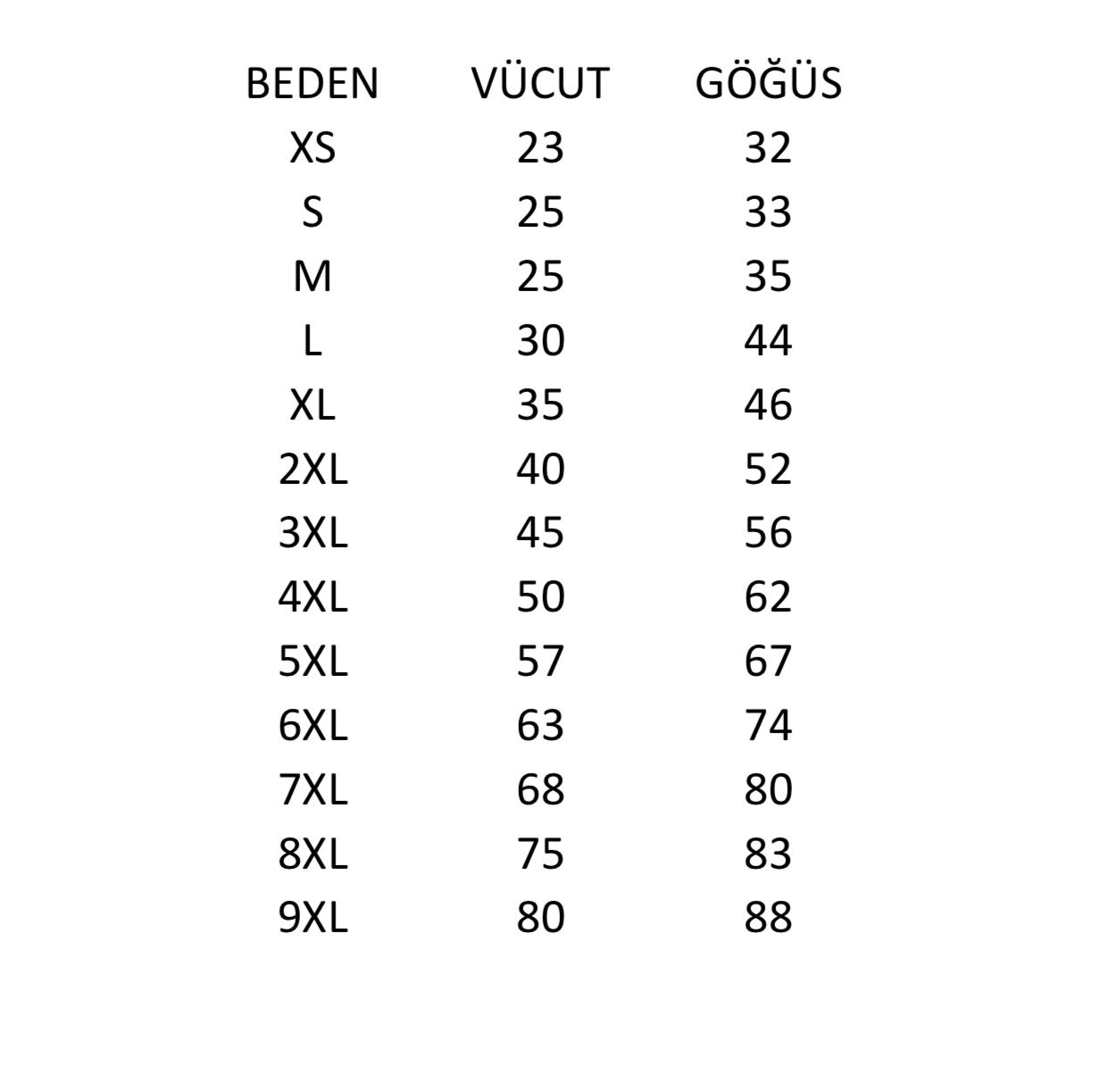 Beden tablosu görselde paylaşılmıştır.